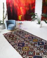 Antique Aydin kilim rug from Aegean region of Turkiye.