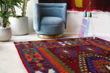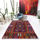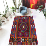 Vintage Denizli Cal kilim rug from Aegean region of Turkiye.