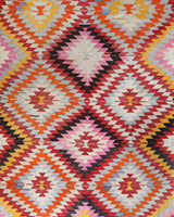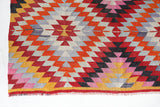 Vintage Denizli kilim rug from Aegean region of Turkiye.