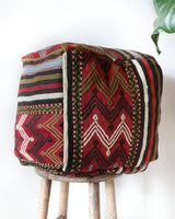 Casual floor seating made of one-of-a-kind Anatolian kilim rugs. Soft cubicle-shaped floor pouf.