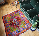 1970s vintage Turkish Turgutlu Rug. This square petite has quite a story.