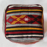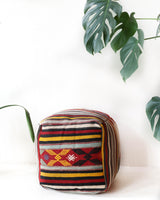 Casual floor seating made of one-of-a-kind Turkish kilim rugs. Soft cubicle-shaped floor pouf.