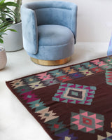 Vintage Milas Bencik kilim rug from Aegean coast of Turkiye.