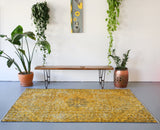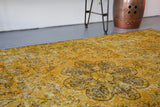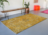 Vintage Turkish Overdyed Rug in Meyer Lemon 4.7ftx7.10ft