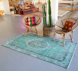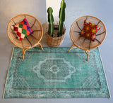 Vintage Turkish Overdyed Rug in Sea Green 3.10ftx6.6ft